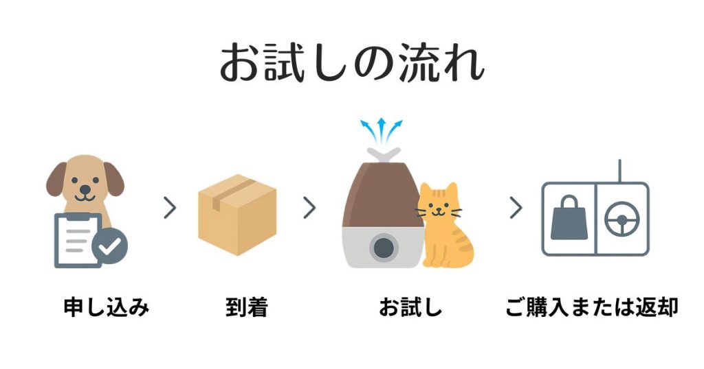 お試し後に気に入った方は、お得に購入またはレンタル感覚で使い続けられる2つの選択肢をご用意しています。